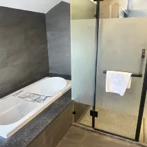 다만, 아쉬웠던 점들이 몇 가지 있었습니다. 에어컨 소음이 커서 숙면에 방해가 되었고, 린스(컨디셔너)가 비치되어 있지 않고 샴푸와 바디워시만 있었던 점도 불편했습니다. 또한, 어메니티(세면도구)의 품질이 좋지 않았는데, 특히 칫솔모가 너무 딱딱했고 베개도 불편할 정도로 딱딱했습니다. 직원들의 서비스 태도도 다소 불친절하게 느껴져 아쉬움이 남습니다.