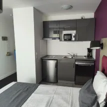 꽤 좋은 것 같아요. 에어컨과 헤어드라이어가 없어서 조금 불편했던 걸 제외하면 나머지는 다 만족스러웠어요. 위치도 환상적이었어요. 투르 기차역 옆에 작은 문이 있어서 그냥 걸어가서 길을 건너서 모퉁이를 돌면 호텔이 나와요. 기차역과 정말 가까워서 다음 날 아침 방에서 나온 지 5분 만에 기차역 플랫폼에 도착했어요. 기차역과도 가깝고, 투르 대성당과 강까지 걸어서 20분밖에 안 걸려요. 바로 아래층에 경전철역도 있어요. 위치도 완벽해요. 프런트 데스크 직원분도 매우 친절하셨고, 제가 들어가고 나갈 때마다 길을 물어봐 주셨어요. 방은 정말 크고 넓었어요. 다리미와 진공청소기도 있었고, 주방에는 전자레인지, 오븐, 냉장고가 있었고, 모든 조리도구가 완비되어 있었어요. 욕실도 아주 넓었어요. 유일한 단점은 에어컨이 없다는 거였어요. 다행히 투르의 날씨는 그 이틀 동안 덥지 않아서 창문을 열면 아주 시원했고 땀도 나지 않았습니다. 헤어드라이어도 없었지만, 다행히 제 머리는 짧아서 금방 말랐습니다.