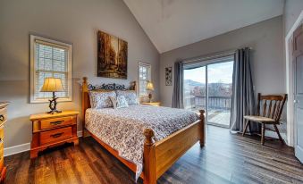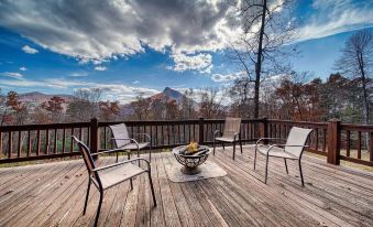 4BR/3BA Mountain-top home has a gravel driveway and is 5 minutes from town, Panoramic Mtn & Lake Views, Semi - Private/Secluded/Wooded setting; 2 levels plus large, open sleeping loft with 2nd stone, gas-log fireplace. Giant Screen HD/TV, Pool Table & Ping Pong Table. Sleeps up to 14 persons. Located just across from our sister property: ' Mossy Oaks Manor'