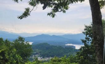 2 Bedroom Cabin with beautiful sunrise views of Lake Chatuge and sunset views from the front porch. The Cabin is centrally located to various outdoor activities from hiking, boating and horseback riding. Come relax and unwind on top of a mountain. Many relaxing amenities including hot tub, pool table with bar area, 70 inch TV, indoor electric and gas fireplaces, outdoor propane firepit with 3 decks and a solorium to enjoy the views. the basement is one large room with walkout to hot tub/firepit