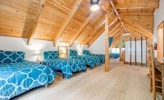Slumber in comfort across 4 bedrooms and 3 bathrooms. On the main floor, the primary bedroom boasts a California king bed. Downstairs, two bedrooms have 2 twin beds each. The upstairs loft boasts space for 6 more twin beds. Any two twin beds can be easily converted to a king if requested before your stay.