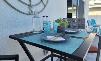This 5 star rated pool home is located directly on the water. Everything you need to relax and rejuvenate on your tropical vacation. This home is a duplex with two units, each rented separately. This 2 bedroom 2 bath unit has upgraded EVERYTHING. New washer and dryer in the unit! You can walk to the Treasure Island Public beach at the end of the street with a 4 minute walk or enjoy dolphin and bird watching from your own pool or dock. All the comforts of home if home had an incredible view of sun rise and sunset over Boca Ciega Bay! Rent a boat or bring your own as we have an available boat dock and lift for an extra charge (please contact prior to booking if interested). Completely remodeled with all brand new Samsung appliances, and quartz counter tops.