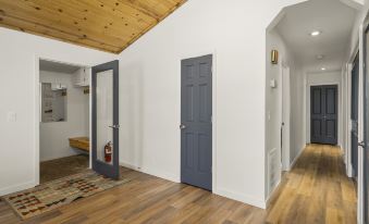 On the lower level of this home, guests will find an ultimate lounge area. With a casual living area, wet bar, full bathroom, and two extra bedrooms, this is the perfect place for guests to kick back. The large, plush sectional and wall-mounted flatscreen provides an ideal space to watch your favorite movies or stream your favorite series. The wet bar, designed similarly to the main kitchen, offers plenty of storage and a full-sized fridge as well as a small table for casual dining and snacking. With a four-piece bathroom, double twin bedroom and bright, queen bedroom, there is plenty of space for your entire party to sleep comfortably. On the lower-level courtyard, guests have access to the large, private hot tub - the best way to end every day in Truckee!
