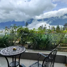 호텔은 언덕에 위치해 있어 산 전체의 전망을 즐길 수 있습니다. 호텔 정원에는 다양한 꽃이 심어져 있는데, 지금 만발하여 매우 아름답습니다. 우리는 산 전망이 보이는 방에 머물렀습니다. 첫날에는 안개 때문에 하얀 안개만 볼 수 있었습니다. 두 번째 날, 날씨가 맑았을 때, 우리는 멋진 산의 전망을 볼 수 있었습니다. 산 전망이 보이는 객실을 예약하는 것이 좋습니다. 호텔 서비스는 매우 좋았고, 도심까지 셔틀버스가 운행되고, 레스토랑 음식은 맛있습니다.