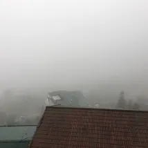 안개로 밖이 보이지 않는 것이 유감이었습니다.