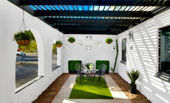 Our desert plants are professionally maintained. Please avoid watering them or disposing anything near their roots. If something looks off or needs attention, just let us know.