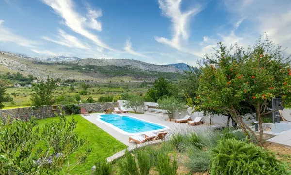 호텔 주소는 Poljicka cesta 55입니다.고요한 시골 빌라, 수영장 있음, 일광욕 데크 있음, 어린이 놀이 구역 있음 위치가 어떻게 되나요?
