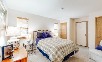 And when it's time to turn in for the night, this home offers four cozy bedrooms including a main room with a king-size bed, one guest room with a queen, a third room with a double, and a kid-friendly room with twin-over-full bunks.