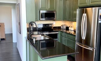 During your stay, you’ll be provided with a complimentary bottle of sparkling wine and a few Keurig pods for morning coffee.