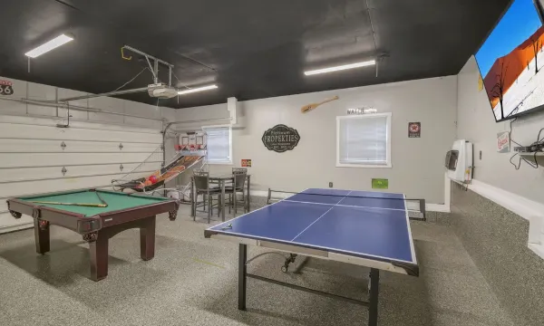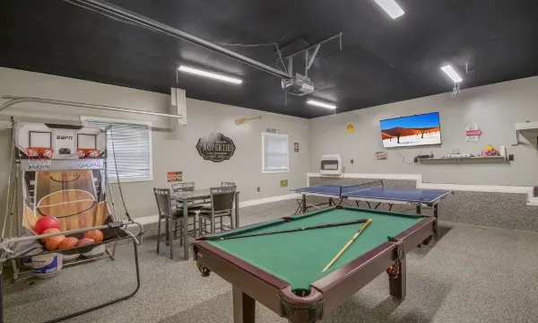 - A newly updated game room has been added with pool table, ping pong, mini basketball, spike ball and darts. 60 inch smart TV in game room.
