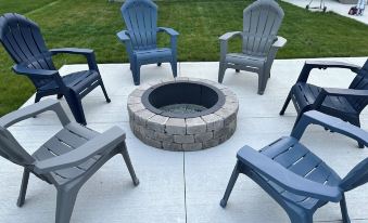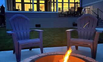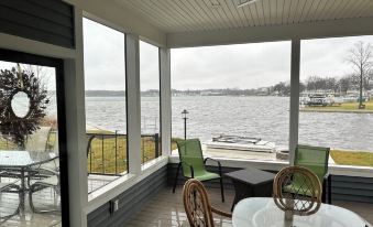 The screened in porch offers a view of the water that you won't forget. The fire pit area will become a favorite spot after a day of sunshine and swimming right in front of the house!