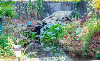 This happy bungalow is a perfect get-away for a couple or solo traveler. This cheerful little abode features a queen bed, full bath, kitchen as well as a fenced-in front and backyard with a large relaxing pond. The Bungalow is just a 5-minute walk to the beach and a short walk to restaurants & pubs!