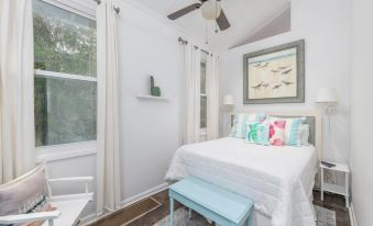 This darling, turquoise-colored home awaits your group to call it home during that next vacation. With Tybee vacation rentals, our property becomes your dream retreat with its private front and backyards. Certainly, this two-bedroom house is ideal for up to four guests. Open the front door to a cozy interior that epitomizes the term "beach getaway."