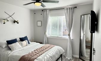 Opting for a clean & uncluttered energy, you’ll find this property equipped for the most discerning guests. Hop inside & elevate your swag. Sip in style in a high top counter wet bar overlooking our gourmet kitchen & fireplace w/a living space that displays an open floor plan & Wall-to-wall windows that flood the space w/natural light. Upstairs you’ll find 3.5 BR’s, full bath & primary suite w/ jetted tub. Backyard boasts a pool, large patio w/overhang & private courtyard, (RV/Boat parking).About pets:Pets allowed: dogs less than 50 lbs per pet (limit 2 pets total).About checkOut:Check out before 10:00 AM.About children:Children allowed: ages 0-17.Safety gates for pool and stairs are installed..About customRules:Quiet hours are from 10 PM to 8 am Monday through Friday..The driveway accommodates space for 4 vehicles. We kindly ask t hat guests do