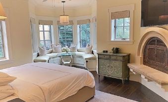 The master bedroom features a king size bed as well as a spacious bathroom with a jetted tub and a separate shower.