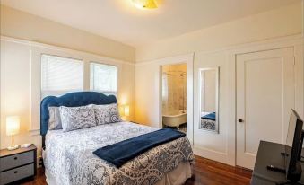 Welcome to your home away from home. This spacious and sunny craftsman bungalow has all the compliments of its 100 year old charm with a modern update. Large private bedroom adjacent to bathroom. Bathroom has clawfoot bathtub with shower. The dining room has been tastefully transformed into an additional sleeping space equipped with a comfortabledoyble bed and night stand(not a private space). Large kitchen with ample counterspace and a trendy pub style workstation/dining table. Enjoy sunsets on the front porch. This home is the perfect cozy environment for business travelers, digital nomads and medical professionals.