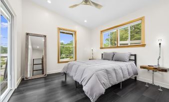This was a really cool property. Amenities were on-point and the decor was amazing. Loved the garage door feature with screen. Great showers, kitchen and location to downtown. One thing to consider is the couch is difficult for older folks to get up and down :) Thanks for allowing us to stay! May plan another trip in the late Spring early Summer to take advantage of the sundeck and lake.