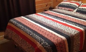 The main/master bedroom has a full-sized bed, while the remaining loft area is furnished with two full-sized beds, comfortable for sleeping six people. The cozy living room is furnished with a reclining love seat and TV/DVD player and DISH Network! The kitchen is equipped with a full refrigerator and stove and a full table/benches for plenty of seating. Guests can enjoy an afternoon of fishing, sitting by the fire pit, or just relaxing while the sun goes down over the river.