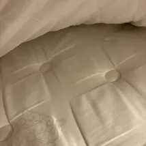 이전 세입자의 소변으로 인해 매트리스가 더러워졌는데, 하우스키핑 측에서 실제로 확인도 하지 않고 넘겨줬습니다. 씻고 잠자리에 들 준비를 했더니 엉덩이가 흠뻑 젖어있는 것을 발견했습니다. 시트와 매트리스에! 정말 역겹다!