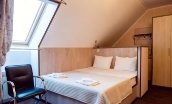 Ужасный отель! Номер мансардный с чудовищным уклоном потолка. Постоянно приходится биться головой об наклонный потолок и в комнате и в санузле. Кондиционер установлен так, что при его работе постоянно находишься под струей воздуха. Подъем на третий этаж по лестницам, не оснащенным перилами. Персонал не приветливый. На столе ресепшн спит кот, летит пух и шерсть. Поменять номер нам отказались, даже за дополнительную плату. Сослались на то что бронирование производилось через Островок, а не напрямую. Оставаться там мы отказались. Никто даже не извинился. Испорченное настроение. Желаю хозяину и его персоналу самим пожить в этом номере, чтобы ощутить все прелести номера