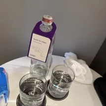 강이 보이는 1층 방을 배정받았습니다. 방은 작았고, 샴페인 통에 있던 얼음은 녹아서 물로 변해 있었습니다. 얼마나 오래 있었는지 알 수 없어서 자세히 볼 엄두도 못 냈죠. 욕실은 넓고 아주 깨끗했습니다. 엄지척!