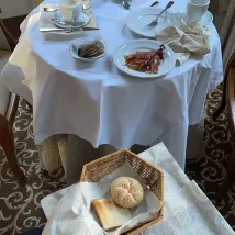 조식은 객실로 제공되는데 맛은 패스라인 바로 위 수준이지만 특별히 맛있지는 않습니다.