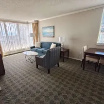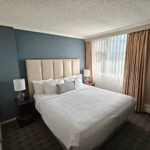 객실은 매우 넓고 침실 하나와 거실 하나가 있으며, 침대는 매우 편안합니다. 다만 헤어드라이어가 조금 오래되어서 사용 시 안전하지 않은 느낌이 듭니다.