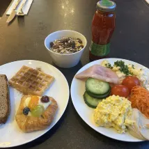 조식도 기대 이상이었는데, 신선한 빵과 다양한 메뉴가 준비되어 있어 아침을 든든하게 시작할 수 있었습니다. 다만, 8시 30분 이후에는 손님이 몰려 음식이 빠르게 소진되는 경우가 많았습니다. 여유롭게 조식을 즐기고 싶다면 7시쯤 내려가서 식사하는 것을 추천합니다.
