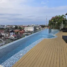 숙소 답변: Dear Mr. Jinsik,Thank you for taking the time to share your feedback. We are pleased to hear that you appreciated the cleanliness, modern design, and convenient location of our hotel, as well as our pool. We understand that room size is an important aspect of your stay, and we apologize if it did not meet your expectations. Your comments are valuable to us, and we will take them into consideration as we strive to improve our services and facilities.We hope to have the opportunity to welcome you back in the future and provide you with an even better experience. Kind regard,Soudalath ChanvannaseeOperations Manager