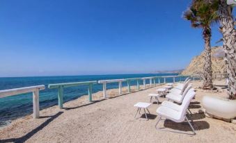 The apartment is on the front line to the sea and a small beach "Playa del Moro". In a wonderfully quiet area with lots of greenery on the doorstep and yet very close to the main beach with its boulevard with restaurants and bars and the center of Villajoyosa. In the summer there is a "Chiringuito" on the beach where you can relax with a drink and possibly a snack until well into the evening. There are also a few large trees on the beach that provide the necessary shade. The main beach with the colorful houses, many bars and restaurants is a 10-minute walk away. Immediately behind the boulevard lies the old center of Villajoyosa with winding narrow streets and even more colorful houses. The bus / tram stop, supermarket, bakery, bank, pharmacy etc. are all within walking distance (10 min).