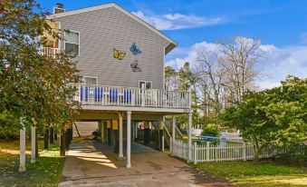 Would give 2.5 stars if i could. We made do with the place because obviously it was already booked. About a 10 minute walk from the beach or boardwalk. Looks better in the pictures than it does it person. The downstairs shower curtain is not long enough so it was constanly was falling out and the floor was always getting wet. The dryer vent is completely blocked so it takes a really long time for anything to dry. The carpets could use a shampoo or even just being replaced. Every seat in the kitchen feels like you are going to fall through. Big outlet hole in the floor of the living room that is quite the hazard. Beds upstairs are like giant pits and sink all the way in. Giant gap between upstairs bath tub and floor next to it leaving the exposed wood wet and starting to smell like mildew. The supports under the house at the carport look like they need replaced very soon. Patio was a nice area minus being attacked by mosquitoes within 5 minutes of sitting out there. It is located in a decent area and enough space for 5 adults and 3 kids. Everything is very weathered.