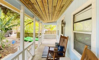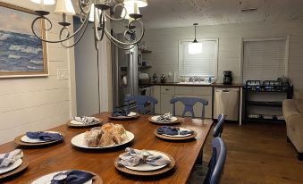 Fully remodeled, 2 bedroom 2 bath cottage with wood floors throughout and pecky cypress walls and ceilings. Outdoor living areas include 2 covered porches and a large open back deck. Large master bedroom with private bathroom, walk in closet, and a king size bed. Second bedroom features a queen size bed and private bathroom. There are two full size sofa beds located in the living room and family room. The dining room features a large, custom built-in banquette that seats up to 10 people. The new open floor plan kitchen overlooks the Family room, which includes a seating area surrounding the fireplace. Living room hosts comfortable seating around a 50” wall mounted flat screen TV. Outdoor shower.About pets:No pets allowed.About checkOut:Check out before 11:00 AM.About children:Children allowed: ages 0-17.About checkIn:Check in after 4:00 PM.About smoking:Smoking is not permitted.Smoke-Free Home.About minBookingAge:Minimum age to rent: 24.About events:No events allowed.