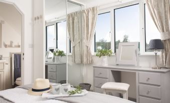 Cosy up beside the wood-burner in the cooler months or simply enjoy the luxury of a quiet afternoon and a favourite book on a summers day. This welcoming room has been beautifully styled with an inspired colour palette of fresh whites and muted greens whilst thoughtful artwork evokes the Cornish scenes surrounding Little Byways.
