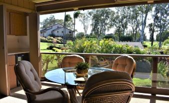 • Enjoy your morning coffee or unwind with afternoon cocktails on the expansive lanai, offering views of lush tropical grounds, ocean vistas, and meandering wild turkeys