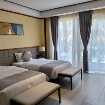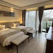 Location is very far away from shops, restaurants and beaches. This makes it quiet and peaceful, but you definitely need a car or be prepared to spend money on taxis. The need for a car rental means there was very very limited parking options with frequent traffic jams trying to get in and out of the hotel. When we arrived (at the designated check in time) our room was not ready. Getting to the room the floor was soaking wet and we had issues being able to find slippers and move around. The balcony floor I was very dirty and mould grew up the wall. The bathroom had a colony of ants. However, the view of the room was lovely, and the furniture clean. Breakfast was good, with some western options, but not many. Would probably not stay again.