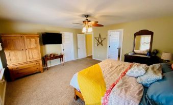 We are unique! Turnerville Tavern is a private farmhouse/gift shop/300 yard driving range located in the middle of the Bourbon Trail in central KY. With vintage furnishings and a large downstairs living room dedicated to all things KY, families/friends can gather here and feel at home. The home is over 4000 square feet so there is plenty of room to move. It is located down a private lane with a beautiful view of the land. There are 3 outdoor porches to sit and view the 40 acre farm and a gift shop with souvenirs. We basically provide everything except food and clothing. Other amenities include a 6-7 person hot tub, fire pit, cornhole boards, books, ping-pong table, games, spacious yard, and farm animals. There are free range rabbits, chickens, and pigs that roam around and call Turnerville their home. Come "hit the hay" at the Tavern. *Free bucket of balls and drivers provided. Feel free to bring your own. This central location makes it convenient to visit all the top notch distilleries. It is a place to kick back. With a central location you can head out any given day in any direction to visit many popular Kentucky sites. Others come to spend their entire time at the farm just to relax and hang out. We furnish everything except food and clothes with country eggs available upon request from our chickens. Choosing a group name is a must! We customize a message board especially for YOU and showcase the names of our past groups. Everyone that visits leaves their mark at our place. Please feel free to ask questions. We are here to help. About pets:No pets allowed.About checkOut:Check out before 11:00 AM.About children:Children allowed: ages 0-17.FYI: There are steps in house but no child gates..About checkIn:Check in after 3:00 PM.About smoking:Smoking is not permitted.About minBookingAge:Minimum age to rent: 25.About events:Events allowed: family gatherings, birthday parties, weddings.Maximum event attendees: 1,We can decorate for a small fee..