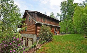 Right on Appalachian Mountain, beautiful modern log cabin with mountain views and lots of safe outdoor spaces to enjoy. Over 4100 square feet on three levels including 5 Bedrooms PLUS bonus room and 3.5 baths. Modern open kitchen includes gas range with warming drawer, stainless steel refrigerator, contemporary cabinets and island with abundant space for seating. Breakfast nook with huge farm table with seating up to 12. Kitchen overlooks BIG Great Room with soaring vaulted ceiling offering views to the outdoors. Lower level has bonus room with foosball table, TV and lots of space for the kids to relax. Home includes three TVs, Cable, high speed internet, high speed HD wifi and Nintendo Wii System. No problems with cell phone reception!