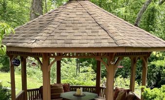 A great location in the wonderful town of Waynesville. I particularly loved the gazebo, the flowers, and the deck. My kids really enjoyed the access to the creek! If you don’t mind cold water, it’s a great place to swim and walk the rocks. Pretty much everything we needed was available or close by to bw gotten quickly enough.
