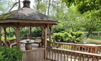 Susan was a super host. She reached out to us prior to arrival and was quick to respond when we had a hiccup when we got to the house and satisfactorily resolved the issue. The gazebo along with the deck and back yard were definite plusses and our 2 little dogs enjoyed the fenced-in back yard (and not having to be on a leach to go potty). Although the weather was not conducive to spending much time outdoors, we did love being right on the creek. The house was very comfortable with good in-house entertainment options.and good wifi service. The location is very convenient and we made several area excursions (Biltmore House, Maggie Valley/Cataloochee, Lake Junaluska) that were not far and easy to get to, as well as enjoying the great downtown area of Waynesville just minutes away, We plan on returning sometime when the weather is warmer so we can spend more time enjoying the creek and doing some grilling on the deck,