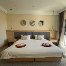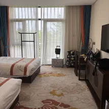객실은 매우 위생적이고 깨끗했으며, 호숫가에 위치한 숲 속 산소 카페 같은 환경이었습니다. 객실도 매우 새것 같았고, 서비스 태도도 정말 훌륭했어요. 이번 난징에서 루산으로 아이와 함께 갯벌 체험 여행을 왔다가 가오더(高德) 앱에서 우연히 발견하고 찾아왔는데, 와보니 정말 좋았고 가성비도 최고였습니다. 저녁 식사는 맛있고 양도 푸짐했으며, 루산의 다른 식당들보다 가격도 저렴해서 놀랐습니다. 심지어 아침 식사도 풍성했어요. 입구에는 대형 무료 주차장이 있었고, 객실 예약 시 두 명에게 야외 온천 이용권을 제공해 여행의 피로를 풀 수 있었습니다. 이번 웨이하이 여행에서 가장 편안하고 좋았던 점은 바로 이곳에서 온천을 즐긴 것이었습니다. 아이와 함께 온 것을 보시고는 아이용 슬리퍼와 칫솔까지 따로 챙겨주시는 등 서비스가 정말 세심하고 완벽했어요. 다음번에도 꼭 다시 방문할 생각입니다.