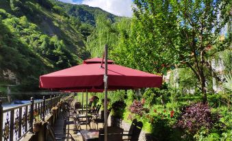 酒店是老闆自己家的房子,位置不錯,就在寨子村口,後邊就是一條河,湍急的水流嘩嘩響。帶孩子暑假來看大熊貓的,缺點是離大熊貓基地稍微有點兒遠。