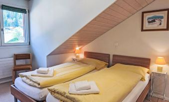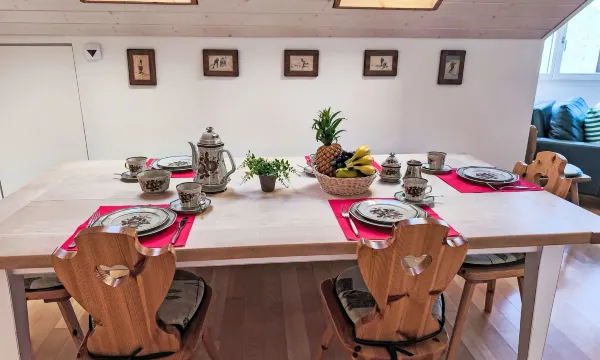 Apartment block "Eiger". In the centre of Wengen, in a central position. In the house: restaurant, lift, central heating system. Pre-arrival grocery service. Stepped path (10 steps) to the house. Shop, supermarket 50 m, restaurant, bakery 10 m, 1 minute walk to the centre, bus stop "Lauterbrunnen (by train)" 3.0 km, railway station "Wengen" 20 m, outdoor swimming pool 500 m. Cable car, skisport facilities 50 m, children's playground 100 m. Well-known lakes can easily be reached: Thunersee 13 km, Brienzersee 13 km. Please note: car-free holiday complex. Arrival via mountain railway. Additional accommodations can be booked. Arrival is only possible by train from Lauterbrunnen – 14 minutes driving time. "Eiger Residence Top Floor Apt P", 3-room apartment 95 m2, on the top floor. Spacious and bright, partly with sloping ceilings, comfortable and modern furnishings: open living/dining room with panoramic window with cable TV. 1 room with 3 beds (90 cm, length 200 cm). 1 room with 2 beds (90 cm, length 200 cm). Large, open kitchen (oven, dishwasher, 4 ceramic glass hob hotplates, kettle, microwave, freezer, electric coffee machine, Capsules for coffee machine (Nespresso) extra, raclette grill, fondue Set (chinoise)). Bath/WC, shower/WC. Marvellous panoramic view of the mountains, the valley and Jungfrau. Facilities: washing machine, dryer, iron, hair dryer. Internet (WiFi, free). Please note: suitable for families. Non-smokers only.