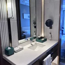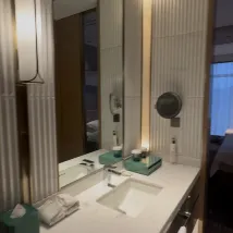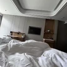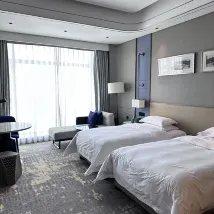 시설: 객실은 층고가 높고 넓은 전망을 즐길 수 있는 천장부터 바닥까지 내려오는 대형 창문이 있습니다. 서비스 직원분께서 매트리스는 모두 진키어 제품이라 아주 편안하게 잤다고 소개를 해주시고 불을 끄고 나면 방에 야간조명 센서가 있어서 밤에 일어나기도 너무 편리하고, 호텔의 의도를 볼 수 있습니다.