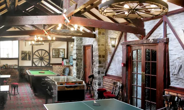 Beautiful secluded location with great views. The hotel has so much history and I enjoyed looking around the site including seeing an old watermill wheel within the pool room. It was very peaceful but not too far from the coast and towns we wanted to visit. Staff were very friendly and welcoming. Our family room was spacious and well stocked with coffee/tea etc. I loved the addition of a fridge. My boys loved playing in the field, seeing the chickens and other resident birds. The games room was a great time for all the family. We only stayed a few days but were able to fit in time in the pool which was lovely and warm.