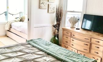 The master bedroom boasts a plush hybrid king bed, a large TV, and a private entry door to the beach. The modernized walk-in shower adds a touch of luxury. The second bedroom features a queen-size bed and a TV, with sliding doors that reveal breathtaking water views. Up in the loft, there’s individual sleeping space for 6, all with twin-size beds and trundles. For those who relish waking up to the sunrise, a daybed with a trundle accommodates 2 more guests. Two full bathrooms, one with a new walk-in shower, provide convenience.