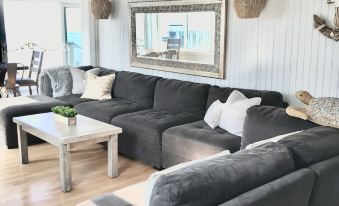 Inside, our 1100 sqft open-concept layout seamlessly combines the kitchen, living room, and dining area. The result? An uninterrupted view of the vast Long Island Sound. The dining area comfortably seats 10, and for outdoor dining, there’s room for 12. The kitchen is fully equipped with new stainless steel appliances, including an ice maker fridge and stove. You’ll also find a grill for outdoor culinary adventures, and for coffee lovers, a Keurig with a traditional coffee pot.
