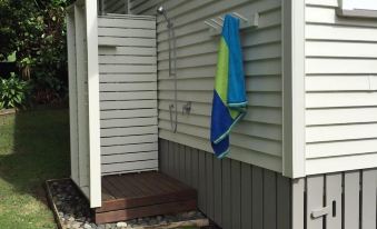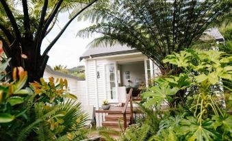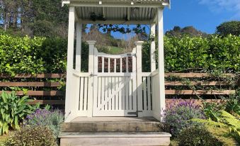 This lovely, fully renovated colonial cottage-style bed sit studio is fully self contained, and situated in an elevated 1 acre of grounds. right on Gregory Lane, a private lane which overlooks the town of Whangamata.