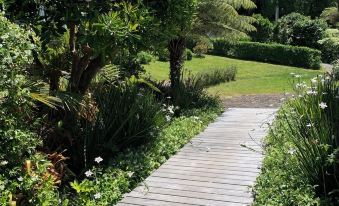 Its set in a peaceful sheltered garden and orchard surroundings with native bird life, yet only minutes drive away from Whangamata's popular surf beach, shops, clubs, estuary / harbour, Wentworth Valley Regional Park and nearby golf courses.