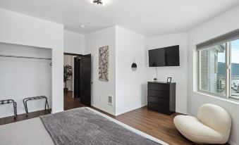 Step into a bright, thoughtfully designed penthouse with modern finishes, contemporary décor, and ample natural light. Whether you’re unwinding in the cozy living area, enjoying a glass of wine on the private balcony, or preparing a meal in the sleek, fully-equipped kitchen, this space is designed for relaxation and convenience.
