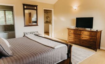 Master bedroom has a nice big king bed, a lovely sitting area with a nice reading chair, a huge Walk-In closet, ceiling fan, a Flat screen TV so you can binge watch Netflix right from bed as well as watching your favorite streaming tv shows.